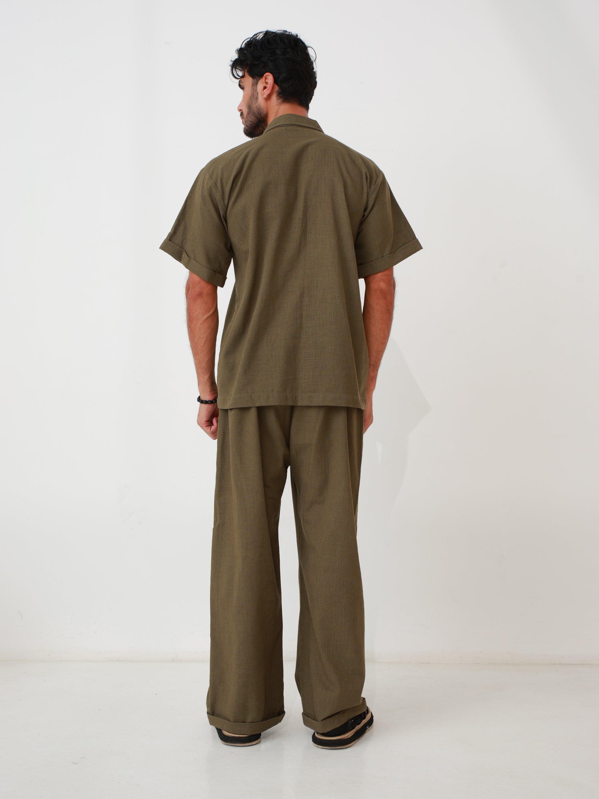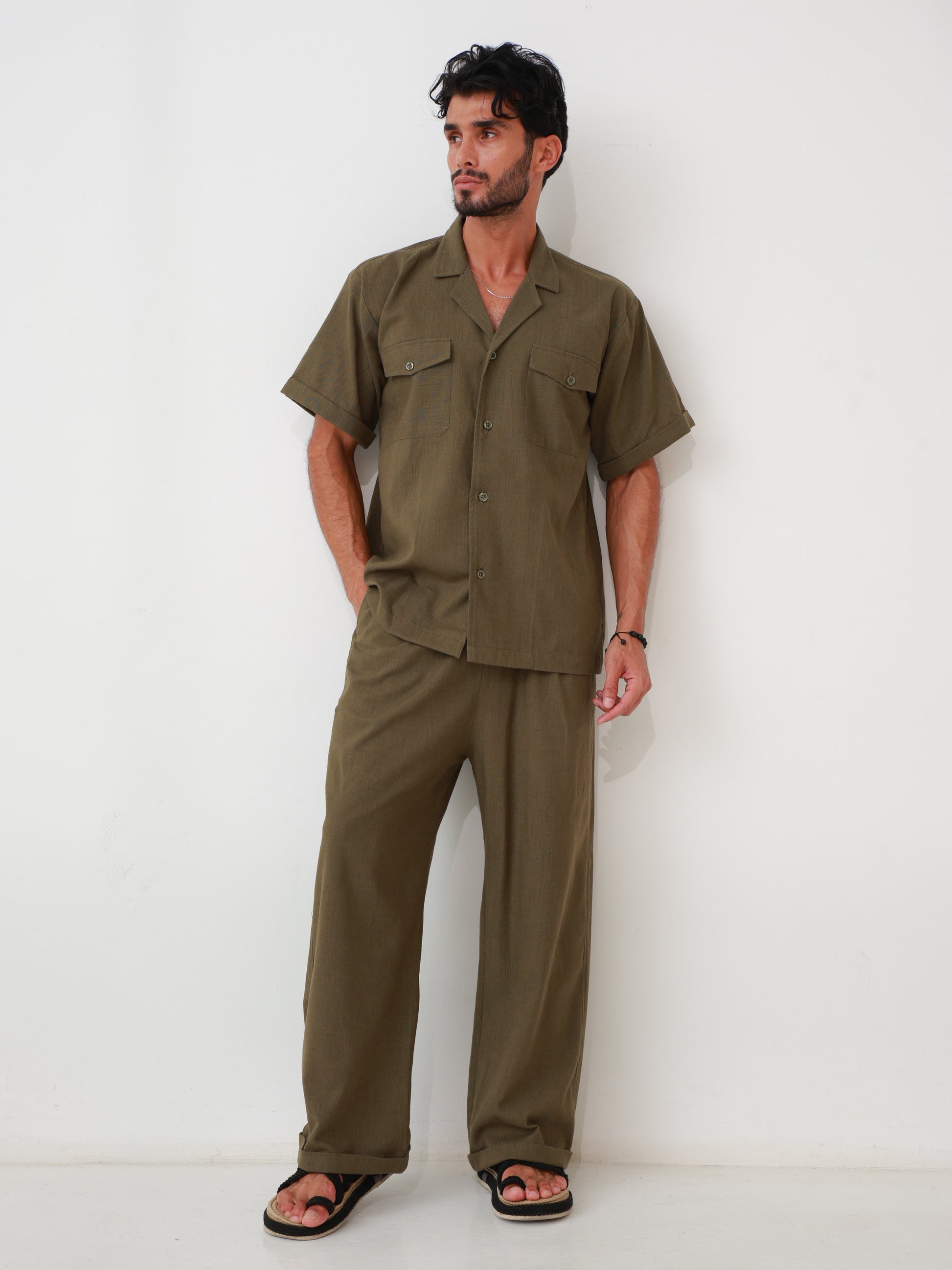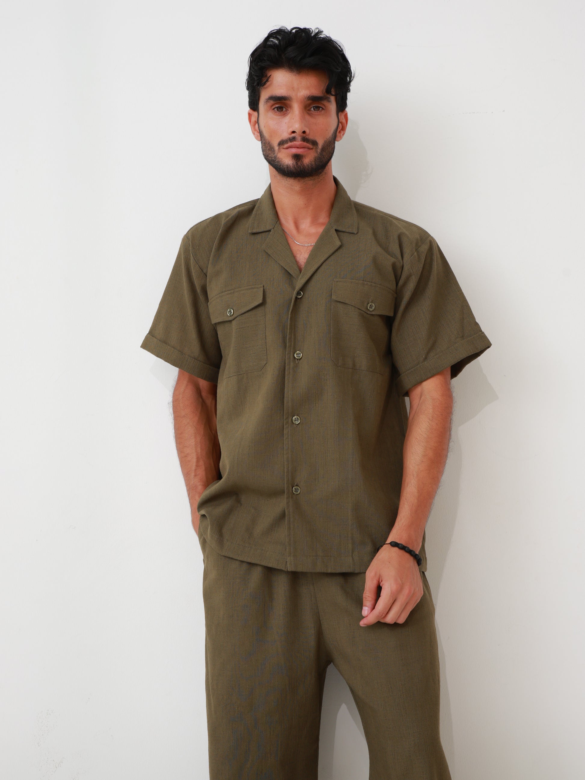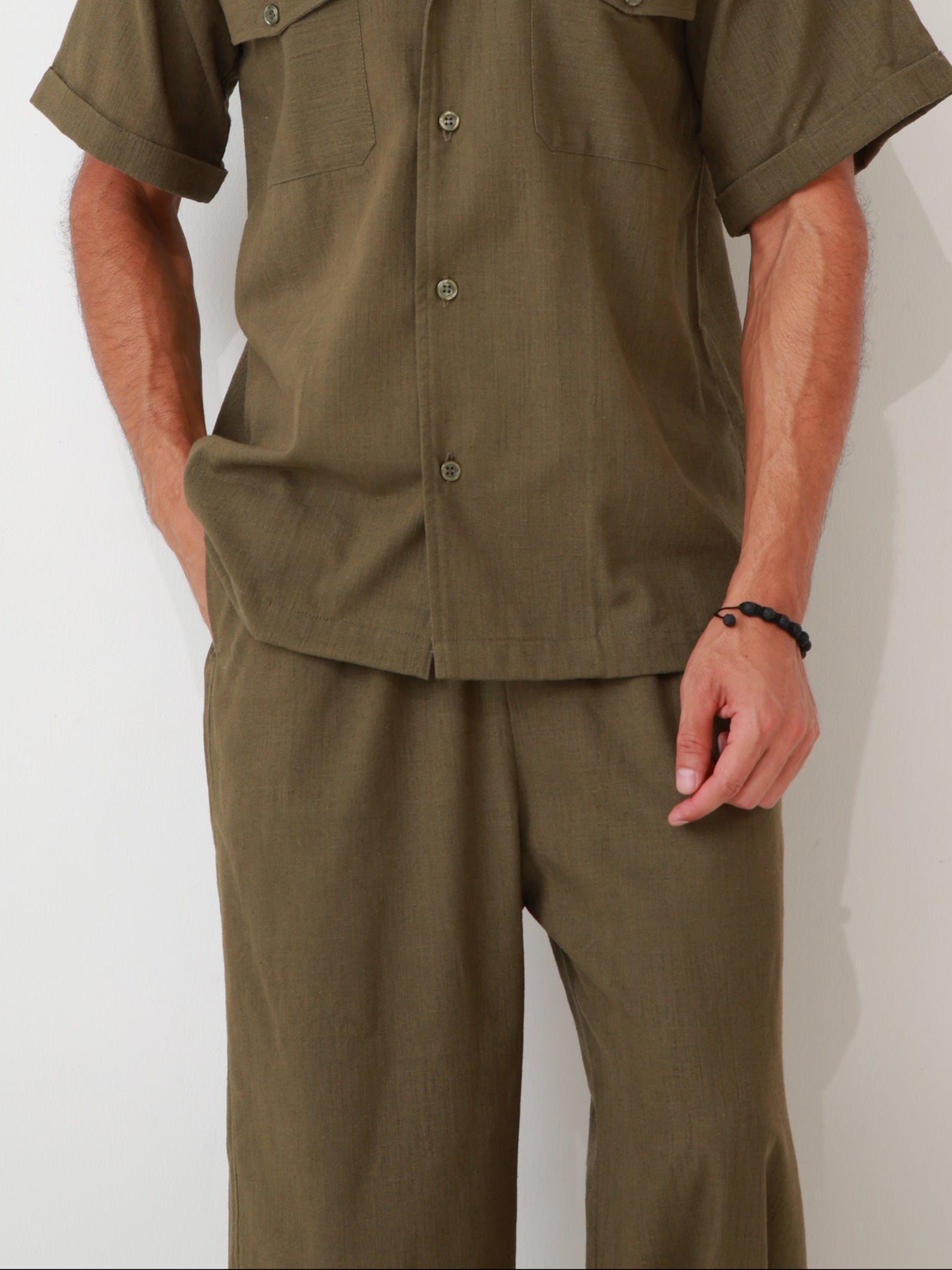 طقم أنيق مصنوع من قماش اللينن الطبيعي، بتصميم عملي وواسع يمنحك حرية الحركة وأناقة بسيطة. تم تنفيذه يدويًا في دولة الإمارات بخياطة دقيقة تعبّر عن ذوق عصري مستلهم من البيئة الصحراوية.